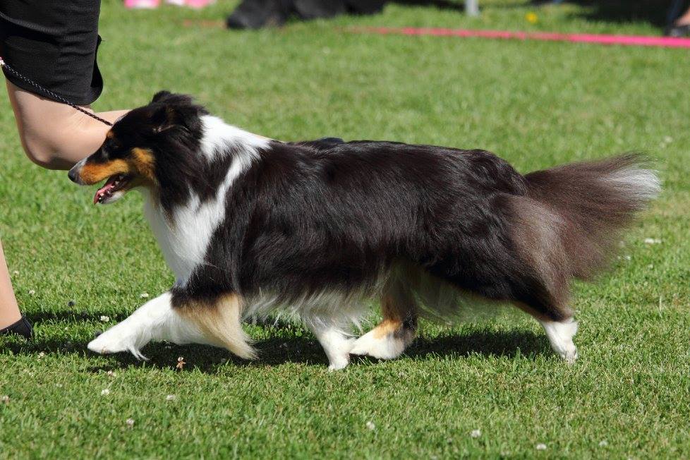 Myös Ramos on menestynyt näyttelykehissä. Sen kanssa tuomareita on katsottu tarkemmin, sillä hyvin vahvana jenkkinä sitä on ihan turha kaikille ilmoittaa. Mutta 10.6 Hämeenlinnassa oli sen tähtihetki. Olin ilmoittanut sen riskillä Marja Talvitielle, joka on tunnetusti todella tiukka ja vaikka tykkäsikin Ramoksesta ihan pikkupentuna, niin koskaan ei voi tietää. Mutta edelleen tykkäsi. Vaikka ensitöikseen mittasi sen. Ja mitta näytti 38cm!! Ramoshan on hyvin kookkaannäköinen, sillä se on todella pitkärunkoinen ja ryhdikäs ja kaulaa löytyy vaikka muille jakaa, joten se todella näyttää paljon isommalta kuin mitä todellisuudessa on. No Talvitielle tämä mitta oli kelvollinen ja Ramos meni ja oli ROP ja sai ensimmäisen SERTinsä! En ihan tähän olisi sentään uskonut. Eikä se menestys sitten loppunut siihen. Talvitie piti siitä niin paljon että pojuhan meni ja oli RYP-1! Ja lopuksi vielä BIS-2!! Ihan huikeaa!! Huhhuh!