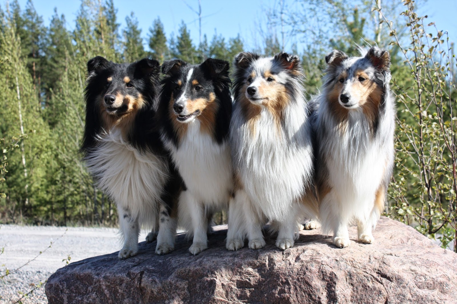 Sunnuntaina oli sitten ohjelmassa ryhmänäyttely Riihimäellä. Tuomarina Georgialainen George Schogol, jolla Luna on käynyt viime kesänä hyvin tuloksin. Shelttejä oli ilmoitettu yhteensä 81 ja näistä 51 narttua. Viva esiintyi ensin junnuissa. Junnuja reilut kymmenen ja Viva jälleen viimeisenä. Tuomari tuntui tykkäävän kovasti ja melko nopeasti siirsi Vivan ykköseksi. Viva siis voitti luokkansa ja sai SAn. Sitten oli aika pitkä odotus ennen valioiden alkua. Valioissa oli viisi koiraa ja Luna oli näistä ensimmäinen. ERI saatiin, kuten kaikki muutkin valiot. Nyt tuomari mietti pitempään ja juoksutti kaikki vielä edestakaisin. Hieno oli sitten hetki, kun osoitti Lunan ykköseksi! Myös Luna siis voitti luokkansa. Aika mahtia! :) Sitten pähkäiltiinkin vetskujen ajan Jukan kanssa, että kumpi esittää kumman. Pakko oli sitten tehdä niin, että itse menin Vivan kanssa ja Jukka Lunan. Viva nimittäin esitteli sellaisia iloloikkia ja hännänliputusta kun Jukka juoksutti sitä ;) PN-kehässä sitten kierros ympäri, jonka jälkeen tuomari poimi neljä jatkoon. Viva ensimmäisesnä, sitten Luna, valioitten toinen ja veteraanien voittaja. Vielä kierros ympäri ja siinä oli järjestys. Viva voitti nartut! Ja Luna oli toinen! Käsittämätöntä! Näin ollen Viva sai SERTin myös. Vautsi! Kuvat alla on ottanut Satu Tuominen.